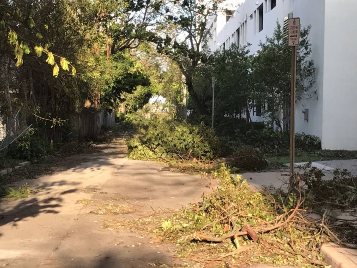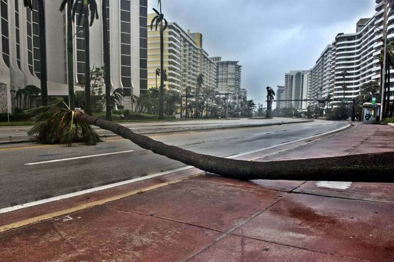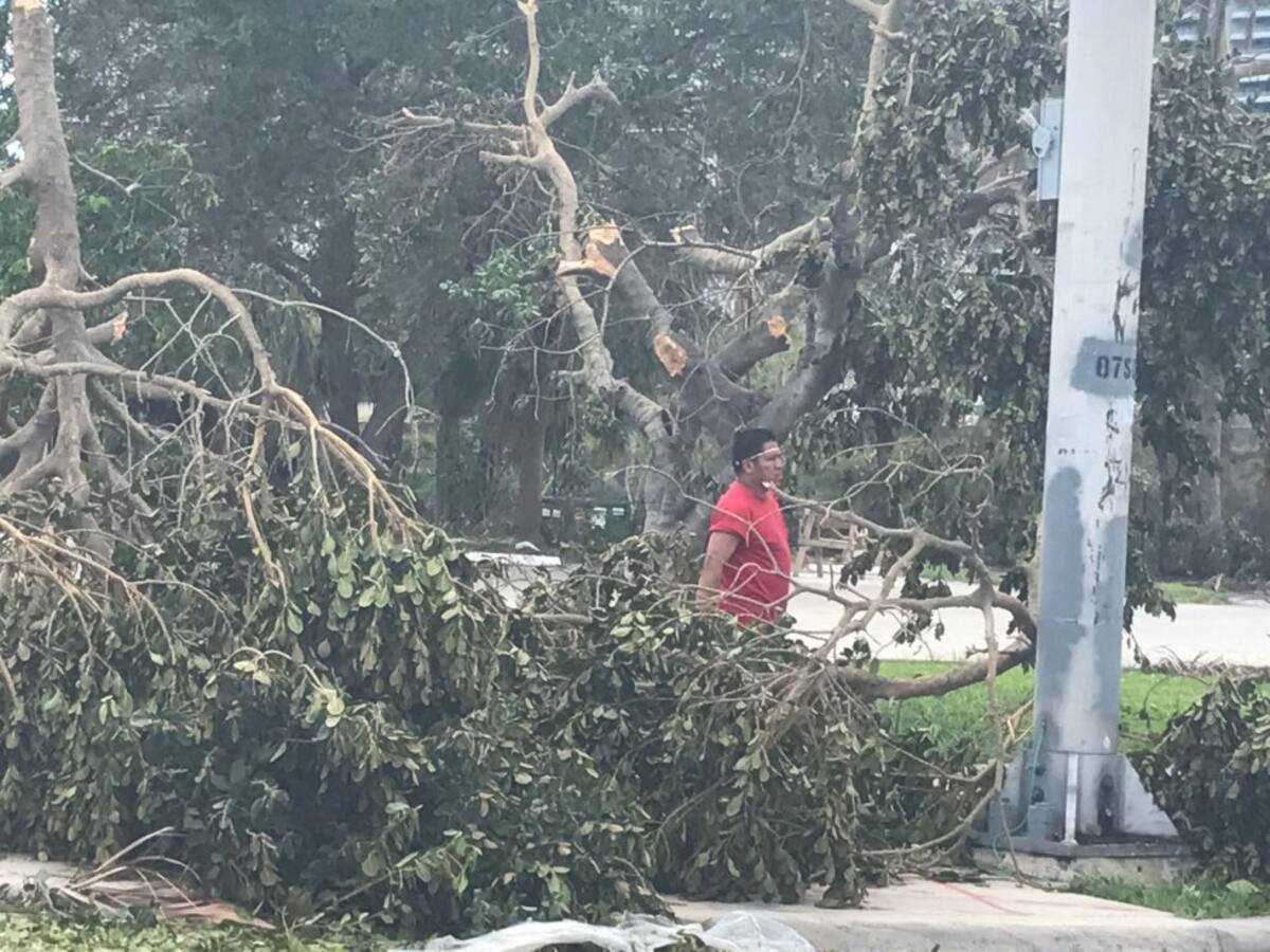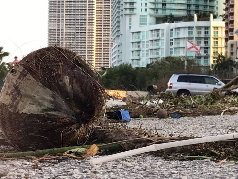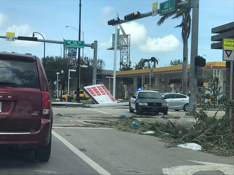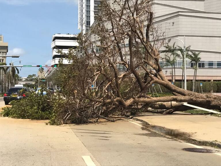 En Miami se registraron varios daños materiales, la caída de árboles, avisos de publicidad, señales de tránsito y enormes grúas de construcción.
