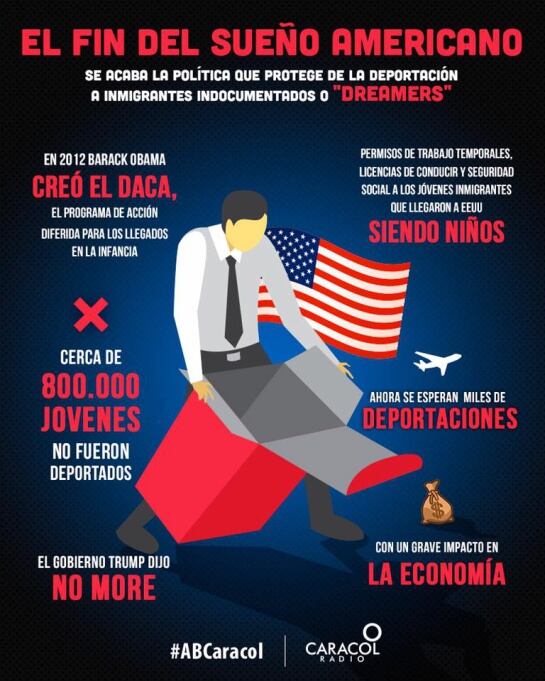 En medio de la polémica, muchas personas se preguntan de qué se trata el DACA. Fue nombrado según las siglas en inglés, pero su nombre es Acción Diferida para los Llegados en la Infancia. Es un plan migratorio que fue creado por Barack Obama en junio de 2012 para diferir o aplazar durante dos años cualquier acción sobre el estatus migratorio a personas que llegaron a Estados Unidos de forma irregular cuando eran niños.