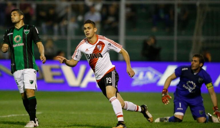 Carlos Auzqui y el juvenil debutante Marcel Picazzo ampliaron la ventaja para River Plate que comparte el liderato con Boca Juniors, ambos suman 9 puntos. Luego de la derrota por 3-0 ante Jorge Wilstermann por el encuentro de ida de los cuartos de final de la Copa Libertadores, el conjunto dirigido por Marcelo Gallardo logró un revitalizador triunfo ante los sanjuaninos.