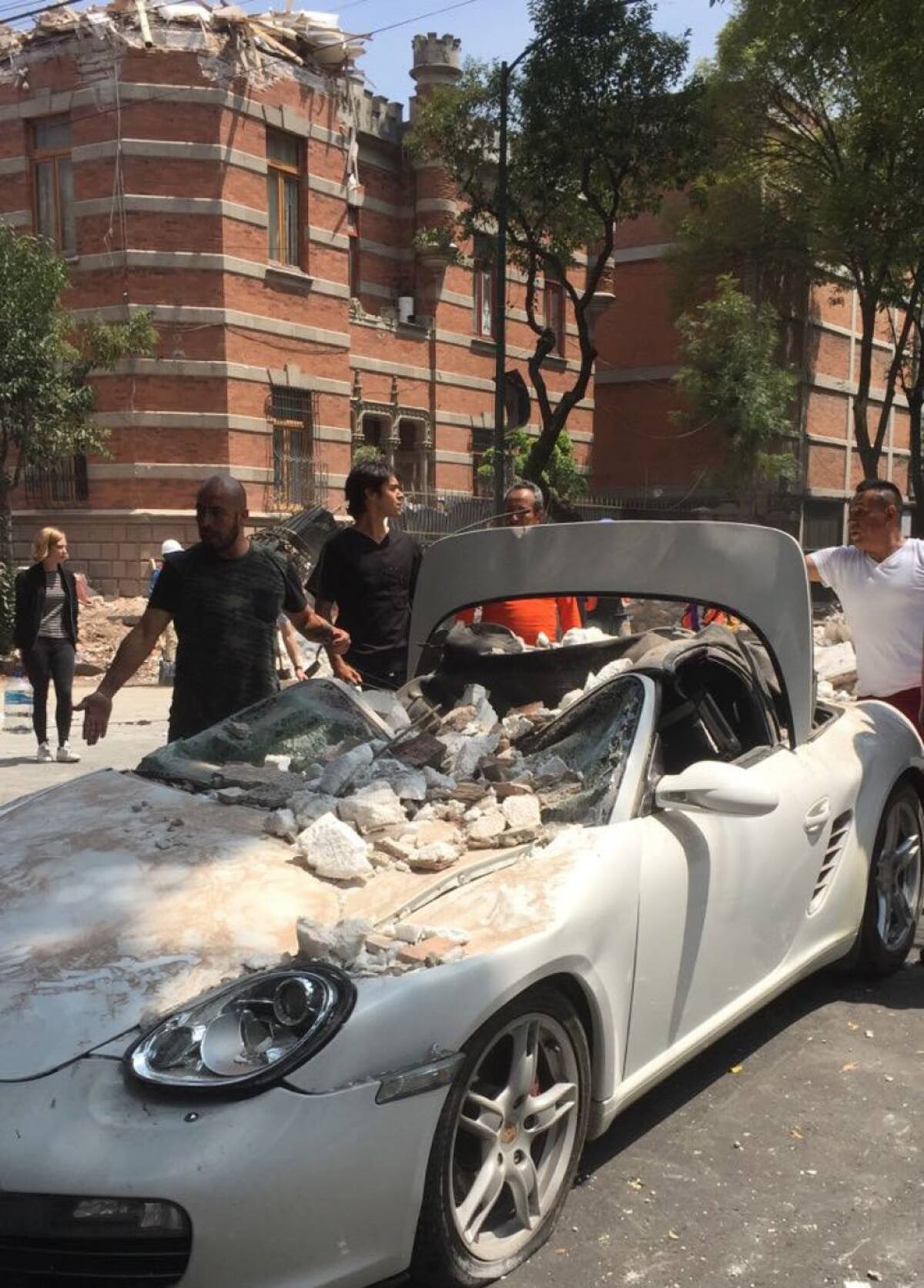 Carros y personas afectadas por el desplome de edificaciones