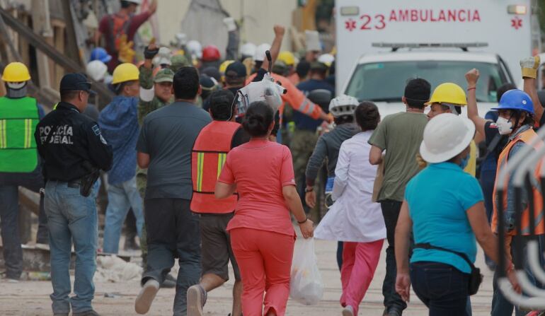 Sarmiento aseguró que hay indicios de una persona adulta que podría haber sobrevivido y permanecer en el edificio colapsado. Esto porque hay rastros de sangre y fotografías que indican que se habría podido mover un poco dentro de los escombros.