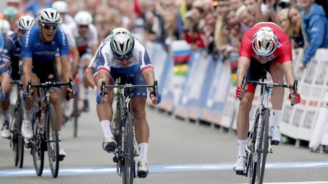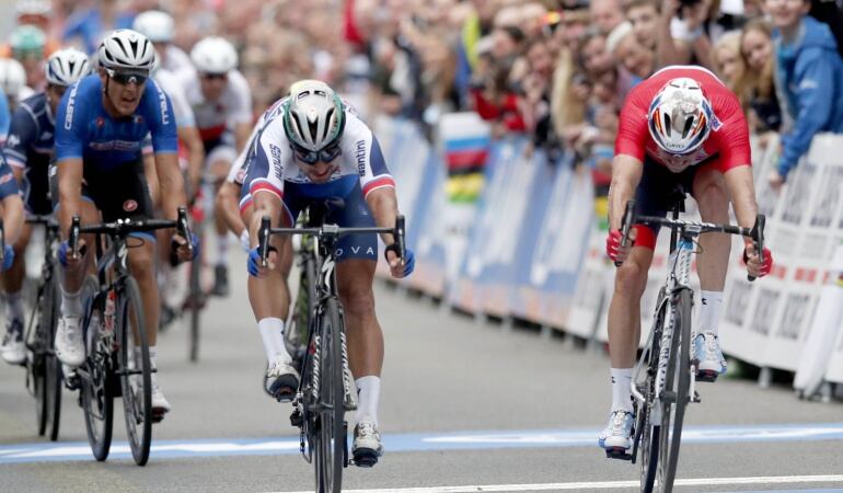 Ha lanzado el sprint Kristoff, Sagan le ha remontado y cuando parecía que el eslovaco lo tenía hecho Kritoff ha hecho un último esfuerzo que casi le vale el oro. Pero no, Sagan ha aguantado unos centímetros de ventaja para entrar en la historia como el mejor corredor de los Mundiales de Ruta de la historia
