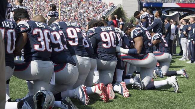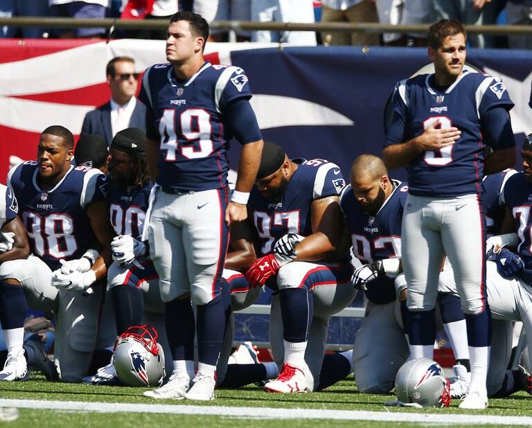 En reacción al presidente, numerosos jugadores de la NLF escucharon hoy antes de sus partidos el himno nacional bien con una rodilla en tierra, bien entrelazando sus brazos con sus compañeros, entrenadores y dueños de sus equipos en señal de unidad.