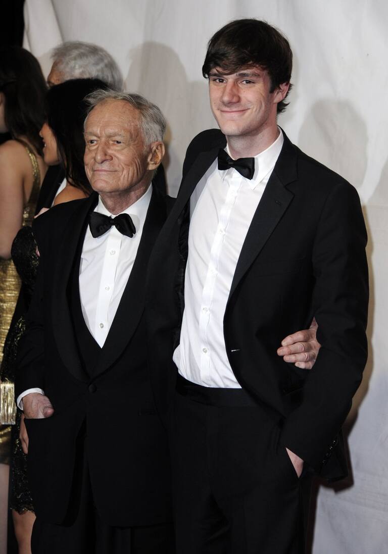 Hugh Hefner junto a su hijo Cooper Hefner a su llegada a la gala MusiCares Persona del Año 2017, en honor a Paul McCartney, en Los Ángeles, Estados Unidos.
