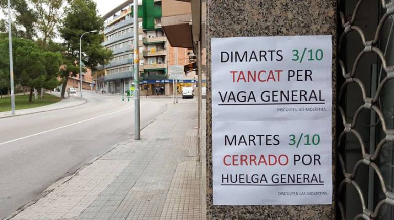Dos días después del referéndum independentista ilegal, Cataluña funciona este martes a medio marcha por la huelga general convocada por sindicatos minoritarios y el "paro de país" promovido por UGT y CC OO para protestar contra la cargas policiales del pasado domingo.