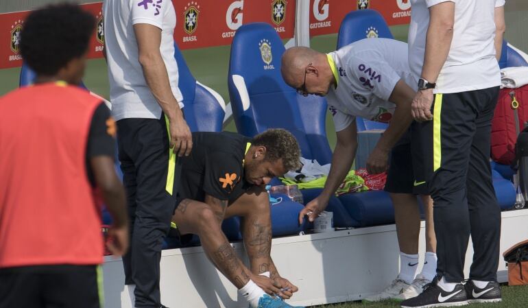 El '10' de la canarinha no pudo seguir en la práctica con sus compañeros.