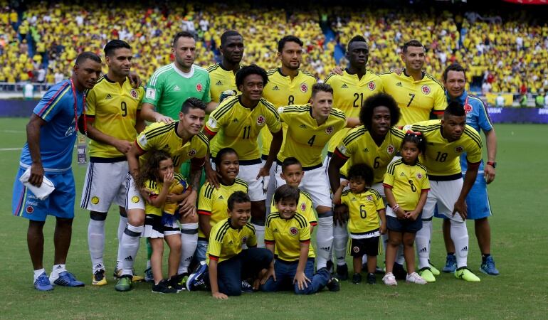 Colombia: David Ospina; Santiago Arias, Cristian Zapata, Dávinson Sánchez, Frank Fabra, Abel Aguilar, Carlos Sánchez, Juan Guillermo Cuadrado, James Rodríguez, Edwin Cardona; Radamel Falcao García. DT: José Pékerman.