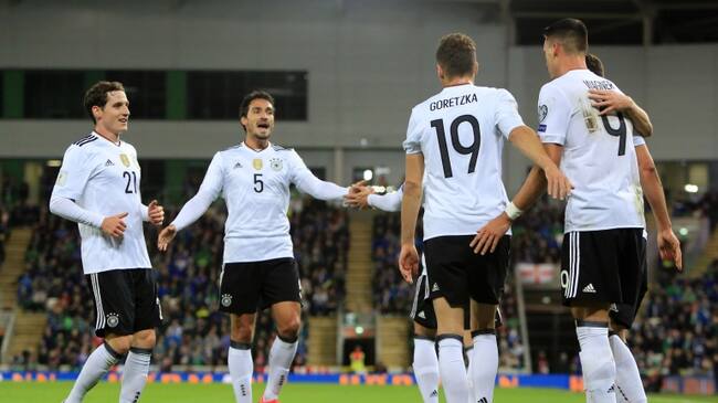 Alemania derrotó hoy a domicilio a Irlanda del Norte (1-3) y aseguró matemáticamente su clasificación al Mundial de Rusia, a falta de una jornada.