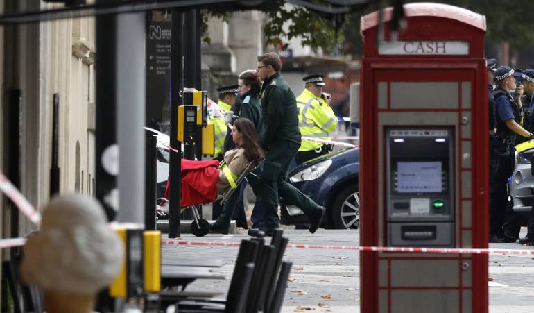 El Servicio de Ambulancias de Londres estaba atendiendo a los heridos. No hubo un comunicado inmediato sobre la cantidad de heridos ni su estado de salud. A los empleados de los negocios del área inmediata se les pidió desalojar el área y la policía estableció un perímetro de seguridad minutos después del incidente.