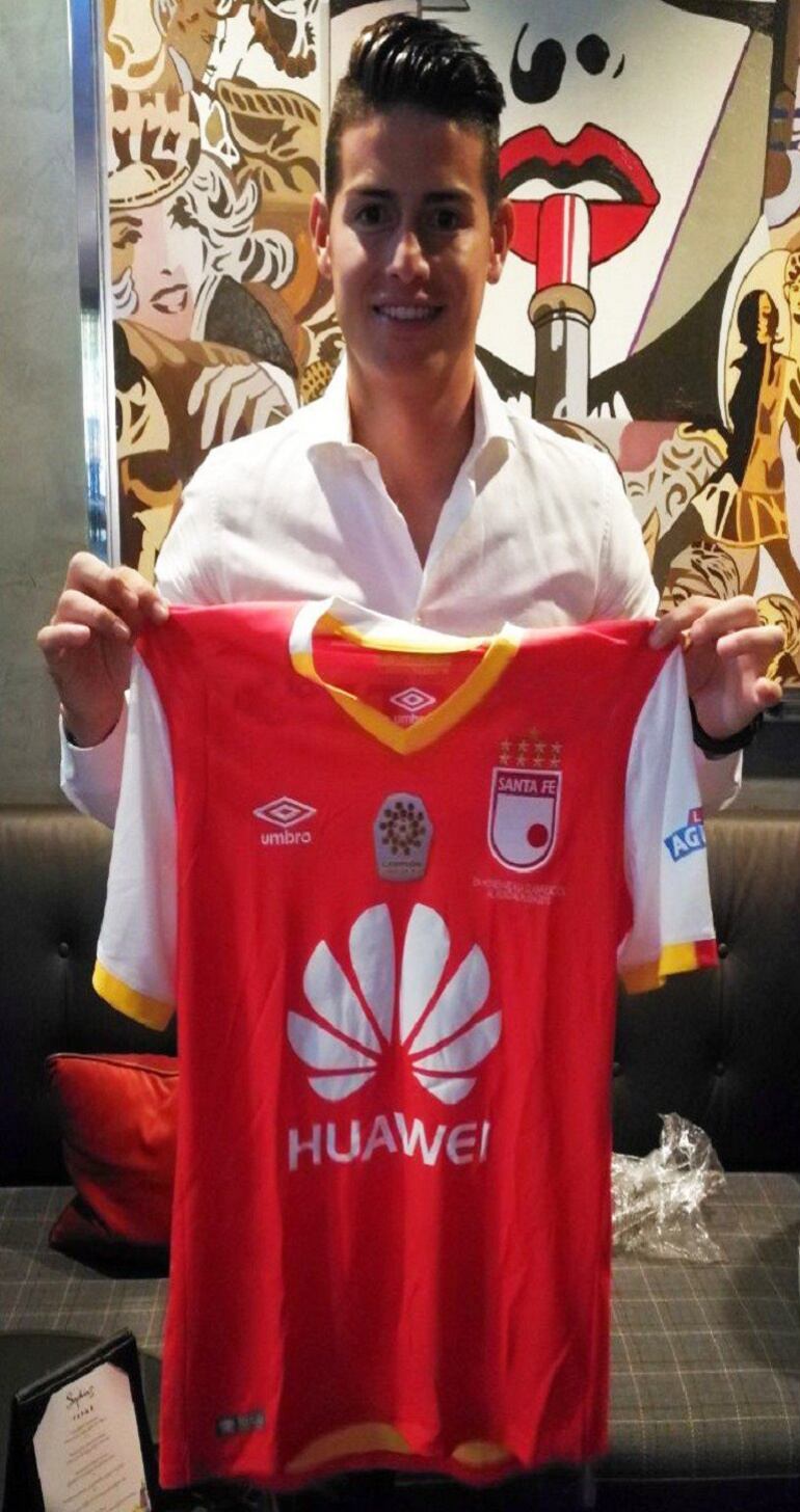 James Rodríguez recibió la camiseta de Santa Fe como regalo
