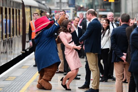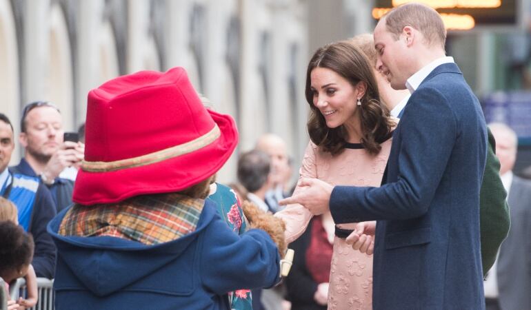 Sin embargo, la duquesa, que ha pasado las últimas semanas alejada de la vida pública debido a las molestias derivadas de su tercer embarazo, se mostró en todo momento muy sonriente y animada mientras recorría la estación de Londres que comparte nombre con el popular animal e incluso se atrevió a marcarse un baile con un Paddington gigante para regocijo de todos los presentes.