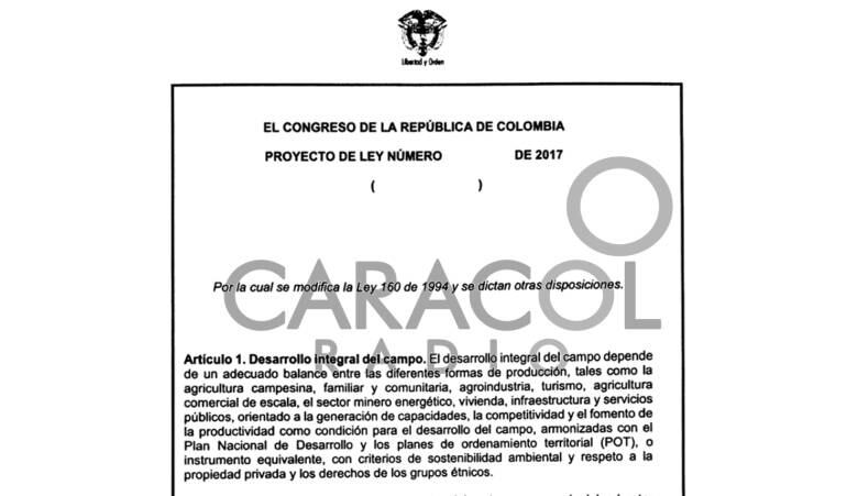 En el documento de 22 hojas y 47 artículos que publica en su totalidad Caracol Radio, del proyecto de Ley de Tierras que está en consulta con las comunidades y que se radicaría la próxima semana en el Congreso, se incluyen figuras ya existentes como la expropiación, pero se crean nuevas como la caducidad agraria.