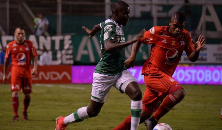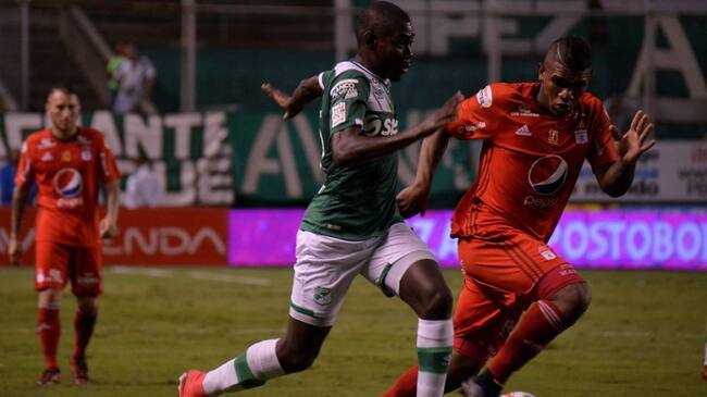 Durante los minutos de ataque verde, Mayer Candelo estuvo cerca de abrir el marcador con un remate de media distancia, el disparo se marchó por poco por el arco defendido por Carlos Bejarano.