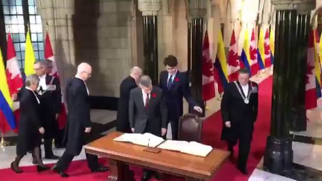 Al anunciar la visita de Estado del presidente Santos, la jefe de Estado declaró que, “Colombia es un socio valioso para Canadá. Esta visita brindará a nuestros dos países una oportunidad importante para mejorar aún más nuestra relación en los ámbitos de la paz, la seguridad, el comercio y el desarrollo'.