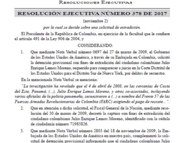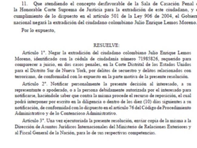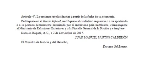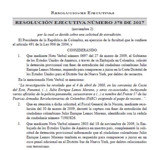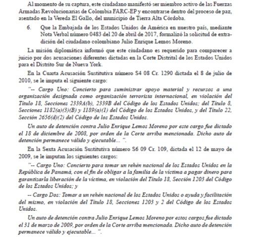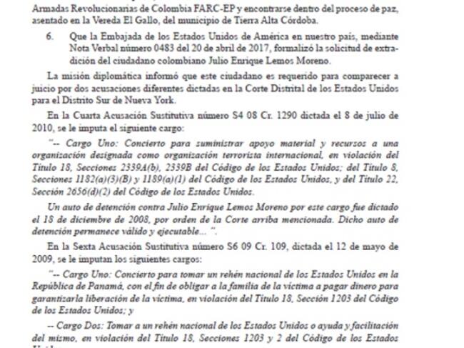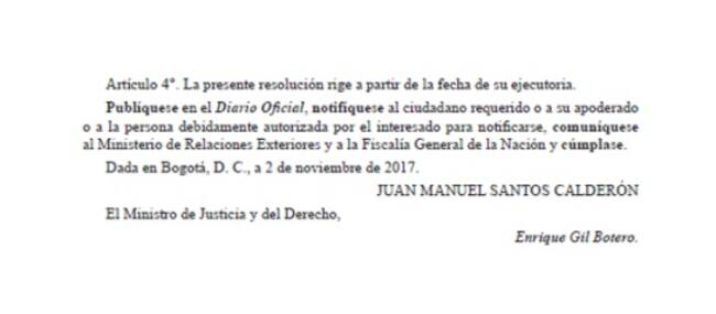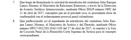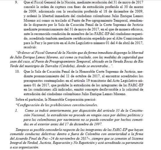 Ahora, el Ministerio de Justicia confirmó que el Gobierno se opone a la extradición y mantendrá a Náder en el país, hasta tanto cumpla con sus obligaciones con la Justicias Especial para la Paz.