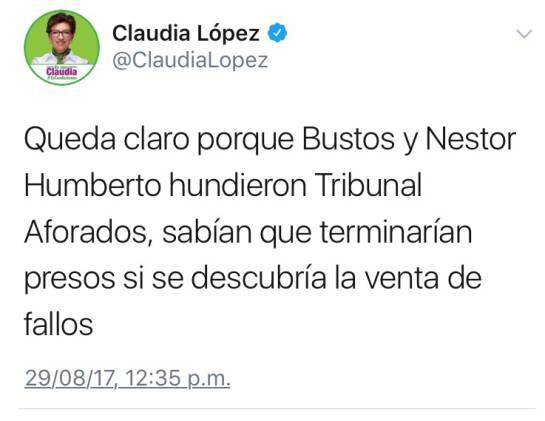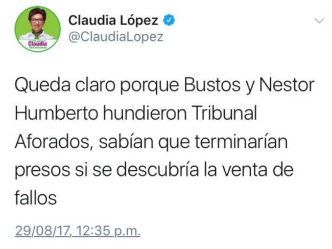 Se trata de la misma tutela que radicó el fiscal general Néstor Humberto Martínez, como persona natural. El fiscal buscaba una retractación de la senadora y precandidata presidencial por el Partido Verde, Claudia López.