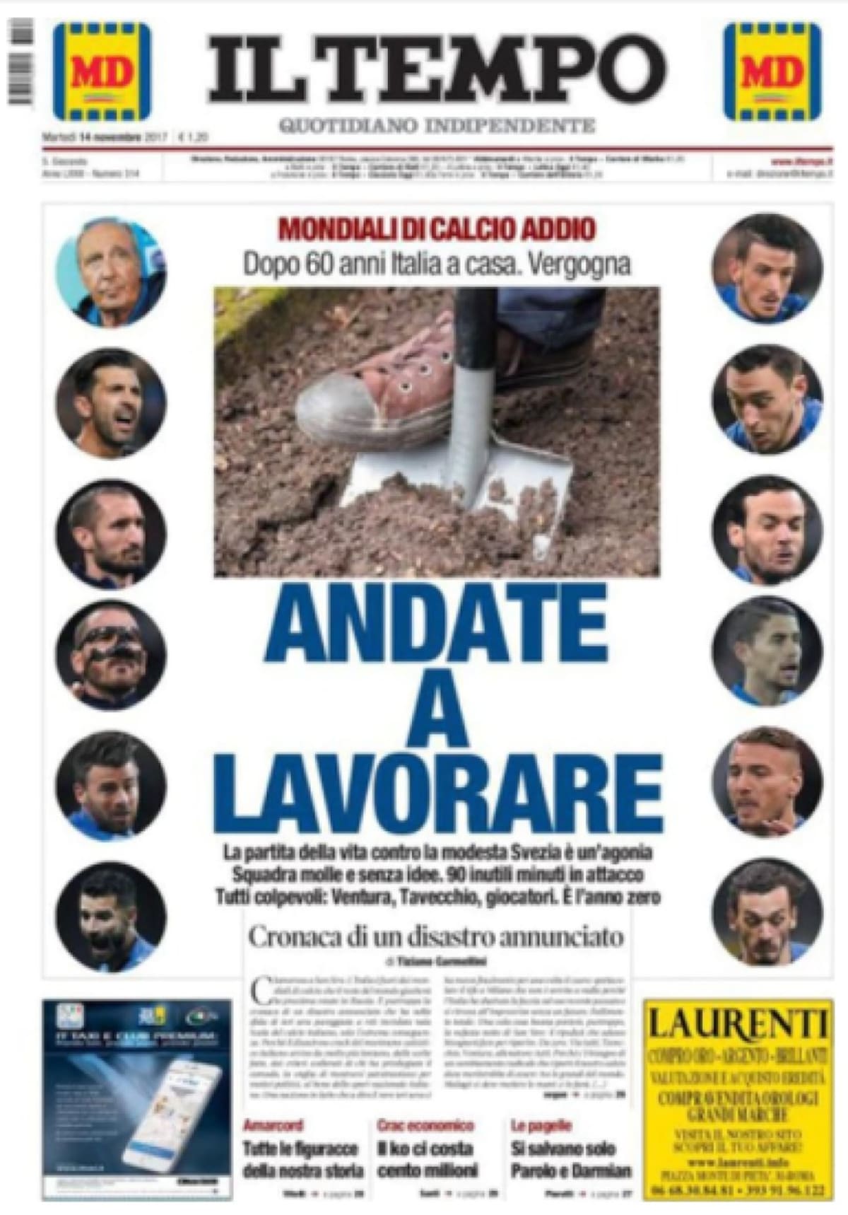 • "Fin. Italia sin mundial después de 60 años".