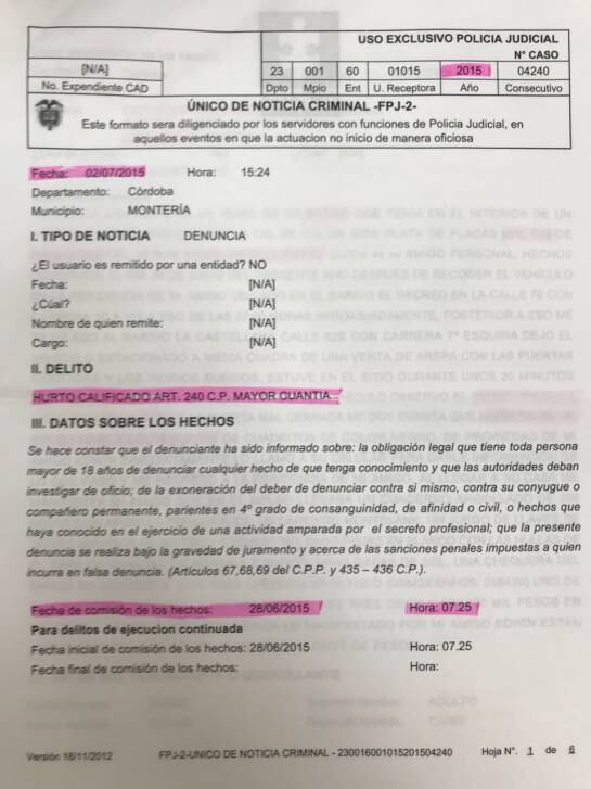 La denuncia fue radica en julio de 2015 y en ella un amigo del gobernador, que tenía en ese momento el vehículo, aseguró que a pesar de tener otros artículos de valor lo único que sacaron los delincuentes fueron los documentos.