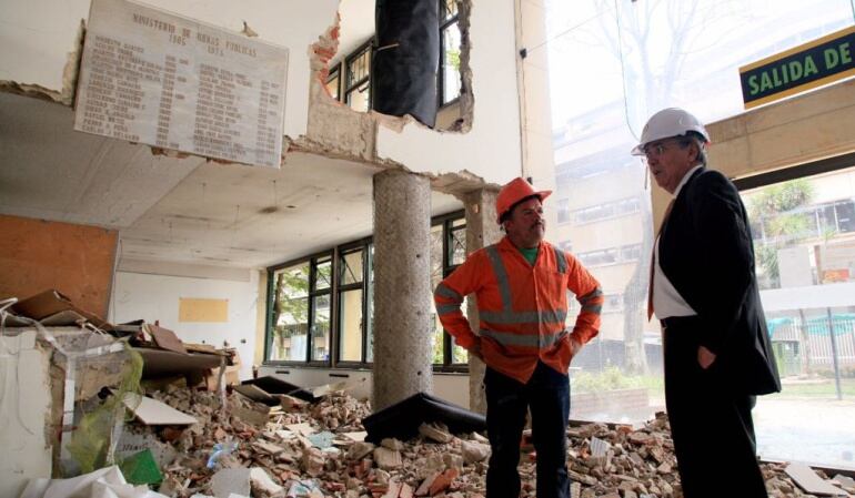 “Vamos a demoler nuestro viejo edificio del ministerio de Transporte por medio de un sistema de implosión. Estuve visitándolo y ya se le hicieron todas las perforaciones que se requieren. Es una edificación que marcó nuestra historia, pero su demolición también significa un renacimiento del sector”, dijo Cardona.