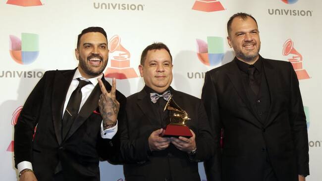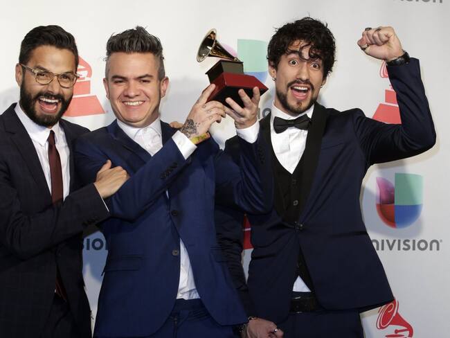 Foto 2 de 9Los miembros de la banda colombiana Diamante Eléctrico posan con su premio 'Mejor Álbum de Rock'.
