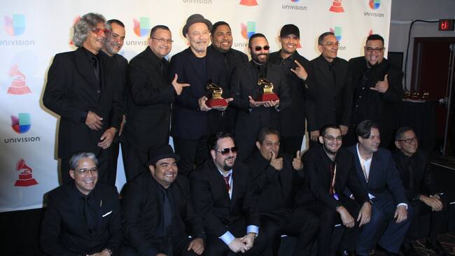 Foto 1 de 9Rubén Blades y Robert Delgado y Orquesta posan con su premio a "Álbum del año" durante los XVIII Premios Grammy Latinos.