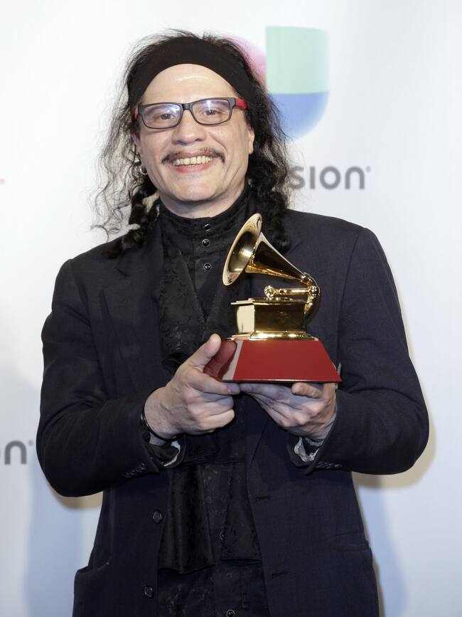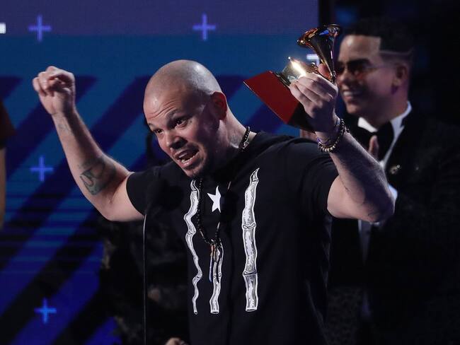 Foto 8 de 9Residente sostiene su premio por 'Mejor canción urbana' se presentan durante los Premios Grammy Latinos.