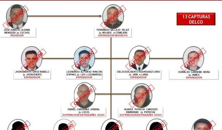 Durante la operación que tuvo su desarrollo durante las primeras horas de la madrugada del jueves y viernes se dio con la captura del expendedor mayorista, Fernando Vallejo Vélez, conocido con el alias de “Mojado o Comején”, del proveedor. José Ignacio Aldana Mendoza, conocido con el alias de “Cucho” y de los expendedores Jhon Everth Ortiz Rabelo, alias “Jhon Evert”, Leonarod Alfonso Rincón Espinel, alias “Leo o Leonardo”, Delio Edilberto Rodríguez Caro, alias “Jara o Lara, así como Oswaldo Carreño Mora, alias “James”.Los otros privados de la libertad, los que se hicieron el flagrancia, cuando realizaban el ilícito de distribución responden a los nombres de Edwar Yulian López Caballero, alias “Edwar”, Wilmer David Vargas Belisario, alias “Wilmer, Gilasrys Carolina Romero González, alias “Gylays, Yenka Daniela Parra Tisoy, alias “Yenka” y Yessyka Paola Vallejo, alias “Yessyka”, quienes fueron debidamente judicializados y llevados a la cárcel.