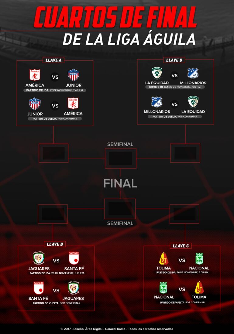 Cruces y horarios de los cuartos de final de la Liga Águila II 2017