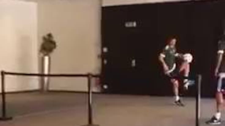 James demuestra su habilidad en fútbol-tenis con sus compañeros del Bayern