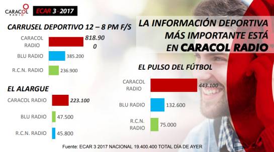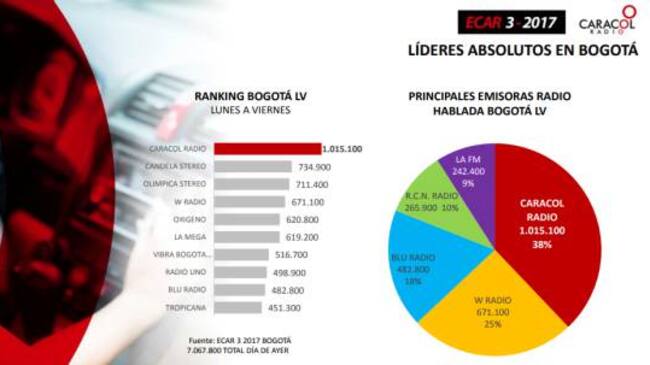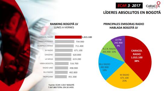 Además Caracol Radio logra un liderazgo absoluto en Bogotá.