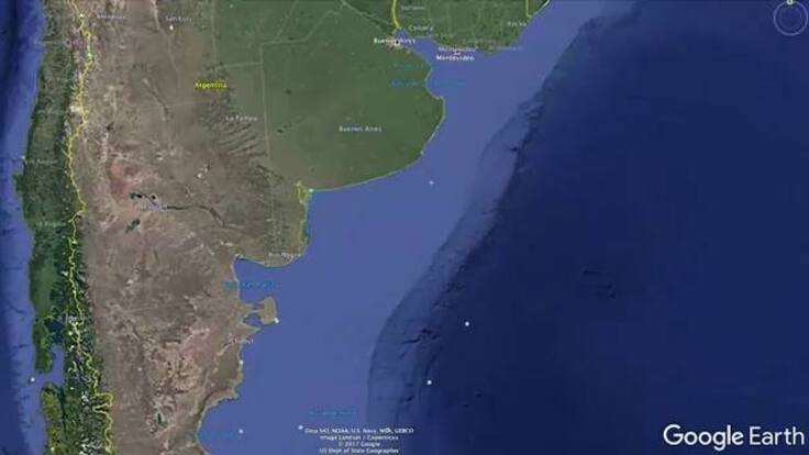 En esta zona se busca el submarino argentino ARA San Juan