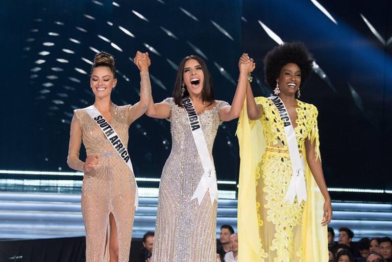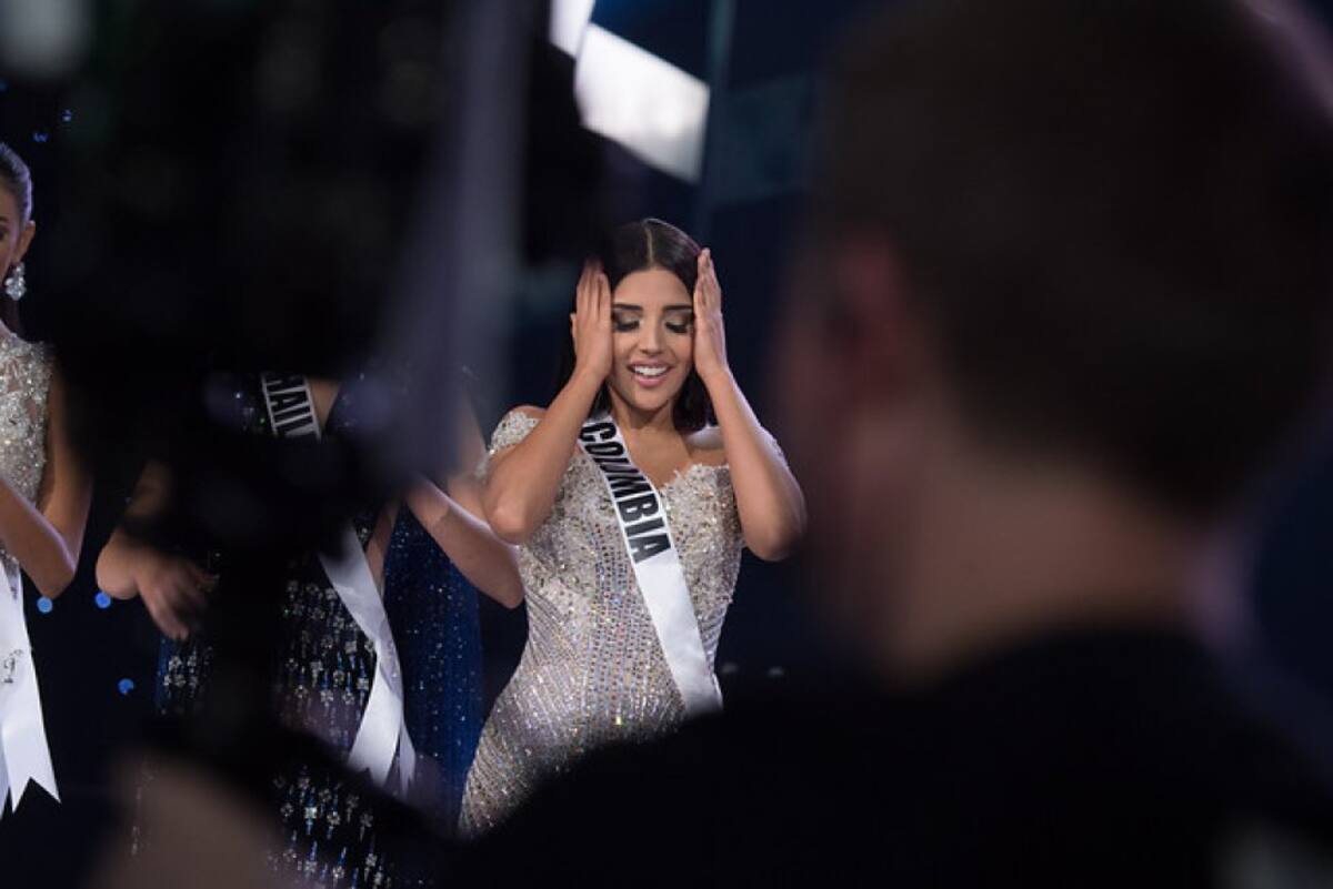 La colombiana mostrando su alegria al estar entre las tres finalistas a llevarse el título de Miss Universo de 2017.