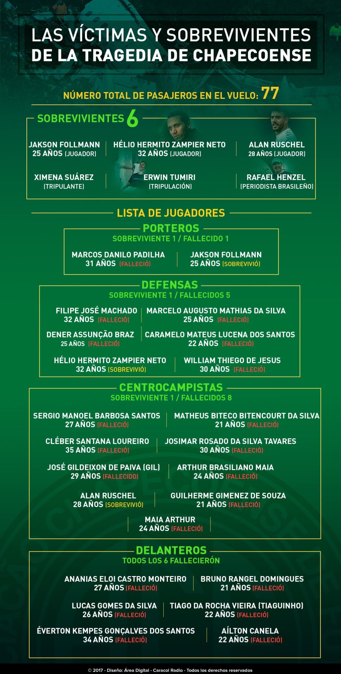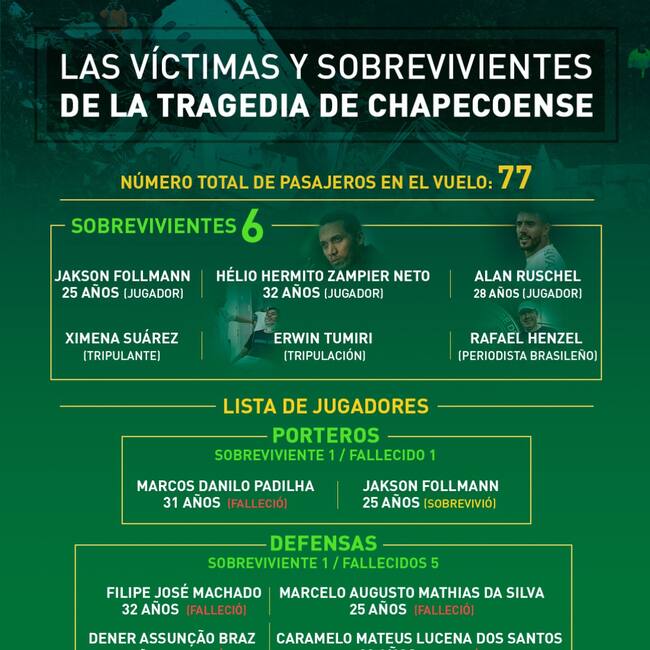 Las víctimas y los sobrevivientes de la tragedia de Chapecoense