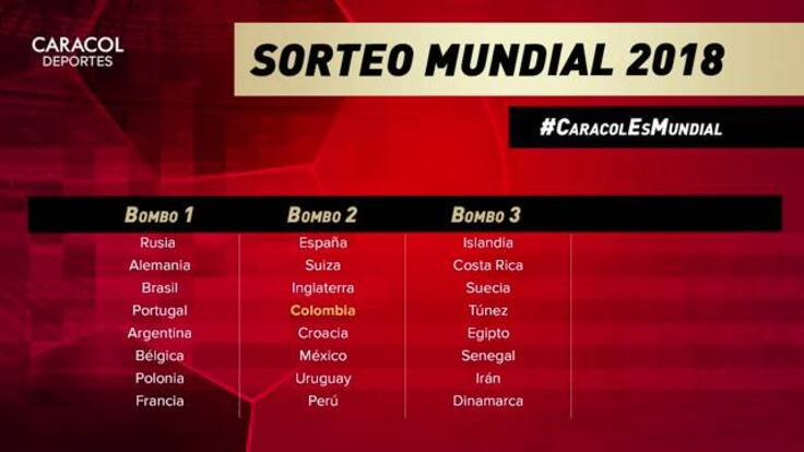 La Selección Colombia está ubicada en el bombo 2.