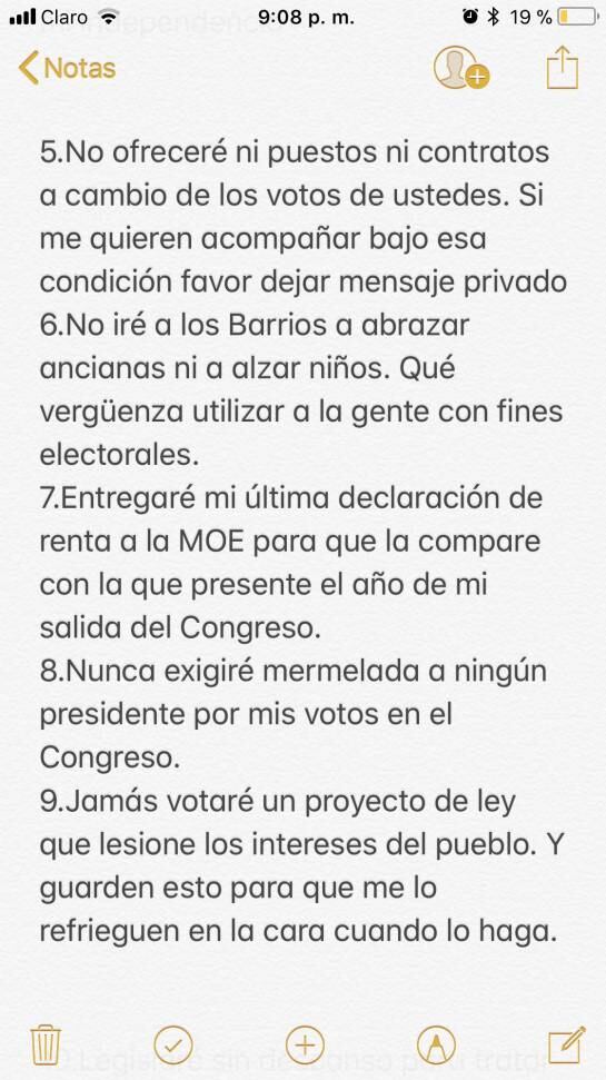 Bolívar dice que no hará campaña, que no pondrá afiches, que no abrazará niños o ancianos e hizo un documentos con nueve promesas que se ha hecho tendencia en redes sociales