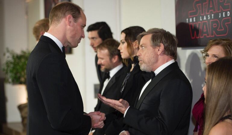 Por la alfombra roja desfilaron los protagonistas de la película, pero quienes se llevaron la atención fueron los príncipes William y Harry, quienes caminaron por esta y seguidamente saludaron a "Luke Skywalker", interpretado por Mark Hamill.