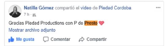 El video fue lanzado por Córdoba justo en el momento en que Colombia se proyectaba el estreno de la nueva película, despertando toda clase de comentarios por parte de los internautas, quienes aprovecharon la oportunidad para hacer notar que la tipología de letra escogida por el equipo de publicidad de Piedad Córdoba, coincide con la caligrafía del logo de una reconocida marca de comidas rápidas.