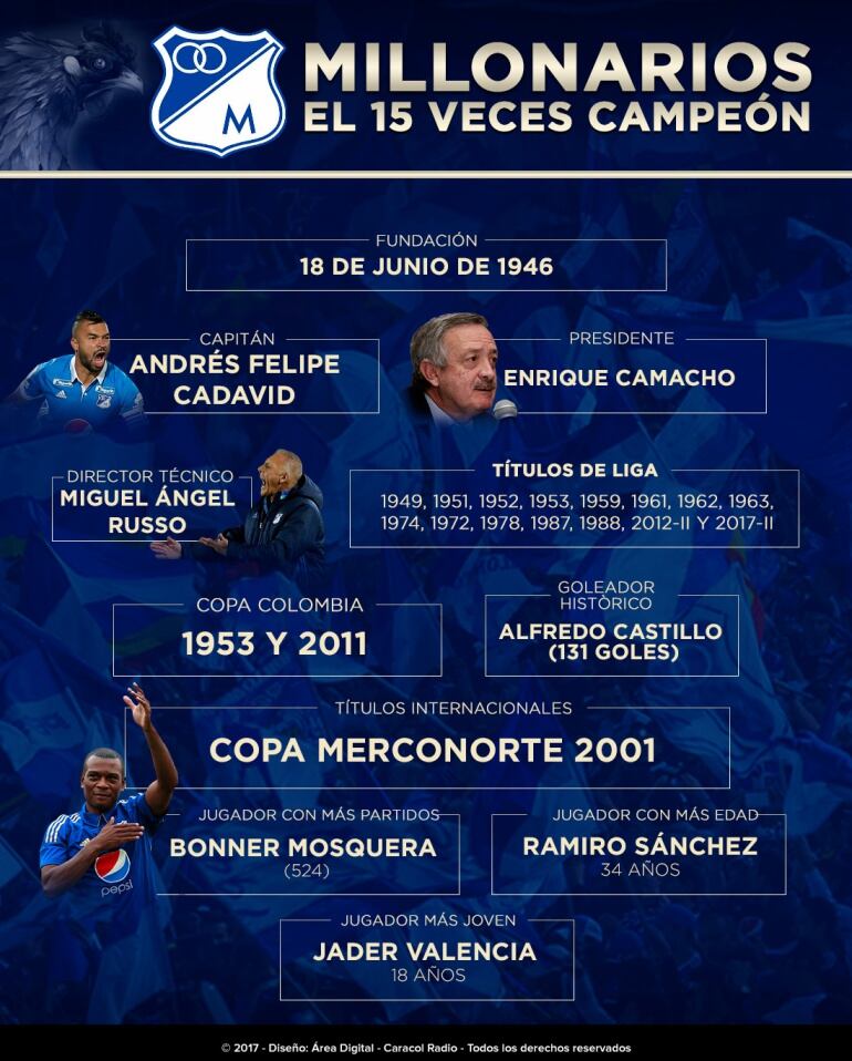 ¡Millonarios, el 15 veces campeón!