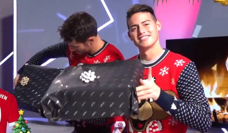 El volante colombiano del Bayern Múnich, James Rodríguez, es protagonista de uno de los videos navideños del equipo alemán, donde se le ve firmando una camiseta y envolviéndola, para obsequiarla a alguno de los seguidores del club.