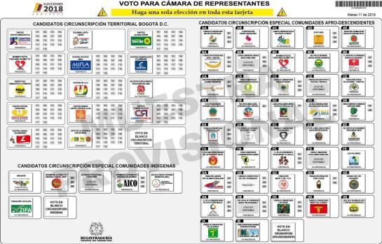 Listo el tarjetón para las elecciones del Congreso en 2018