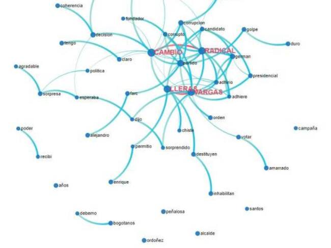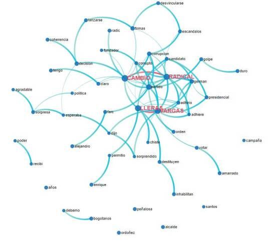 En primer lugar surge como una de las palabras más relacionadas a CAMBIO RADICAL y VARGAS LLERAS el término corrupción y corrupto.