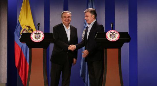 Antonio Guterres, secretario de la ONU, se reunió con el presidente Juan Manuel Santos durante el primer día de su agenda de visita al país.