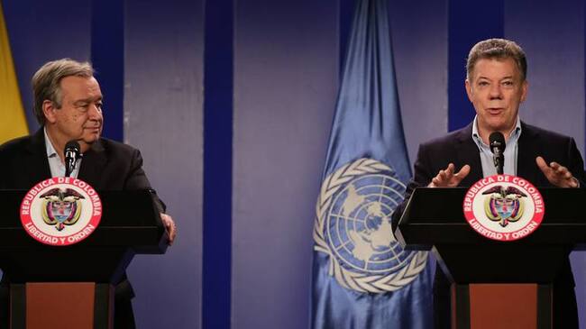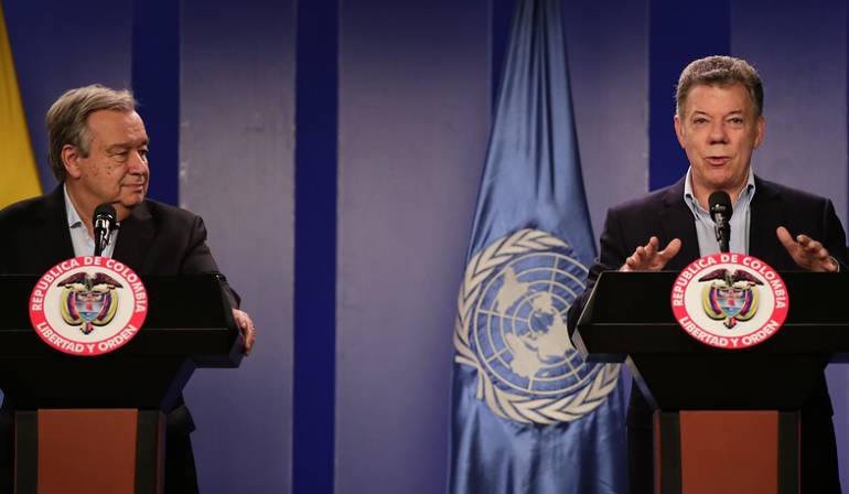 El presidente Juan Manuel Santos entregó detalles de la reunión que sostuvo con el secretario de la ONU Antonio Guterres, que se adelantó en la Casa de Nariño en compañía de varios funcionarios del organismo internacional e integrantes del Gobierno.