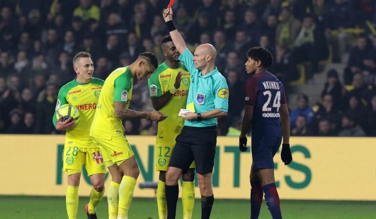 Una jugada sin precedentes le ha dado la vuelta al mundo en el fútbol francés, donde la victoria del PSG 1-0 en campo del Nantes ha pasado a un segundo plano tras lo sucedido. El árbitro del juego golpeó a un jugador y luego decidió expulsarlo.