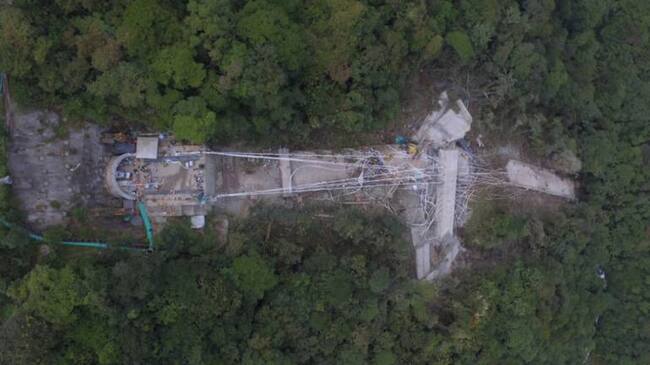 El puente de Chirajara está en construcción y es una estructura con sistema atirantado de tres luces distribuido para un total de 458,47 metros de longitud.