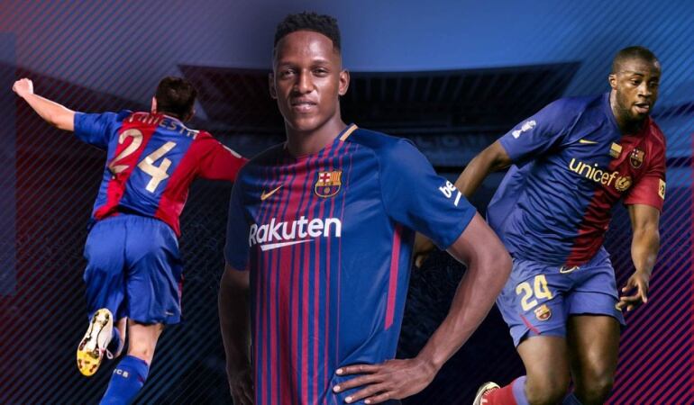 El Barcelona anunció oficialmente que Yerry Mina, primer defensor colombiano en la historia del club catalán, usará el dorsal 24 en las competiciones oficiales que disputará.
