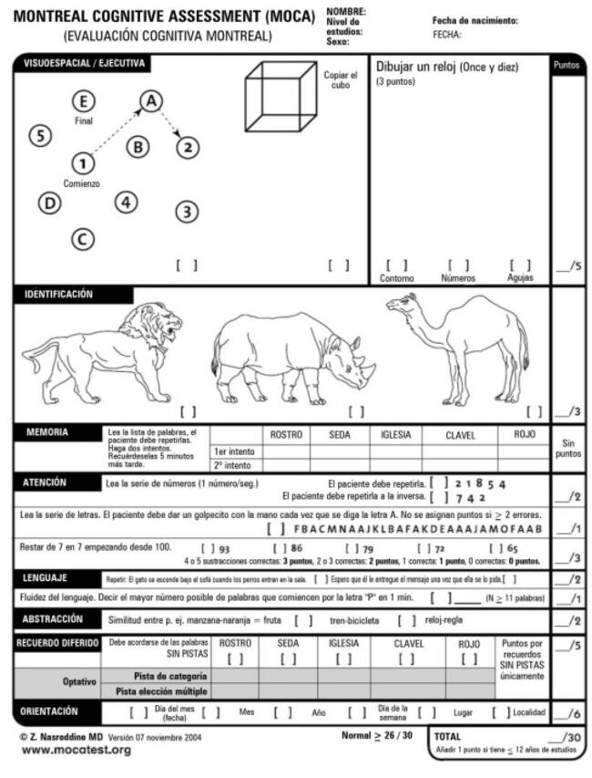 El test se realiza en apenas diez minutos y sirve para detectar problemas leves mediante una serie de preguntas. Se utiliza por ejemplo para determinar si el paciente tiene pérdida de memoria o dificultades de atención. Además, evalúa otros dominios cognitivos como concentración, funciones ejecutivas, lenguaje, habilidades visuoconstructivas, pensamiento conceptual, cálculo y orientación.