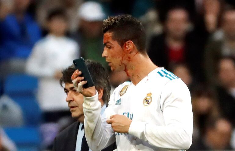 Cristiano Ronaldo, delantero del Real Madrid, abandonó el partido de Liga ante el Deportivo en el minuto 84 después de sufrir una brecha cerca del ojo izquierdo.