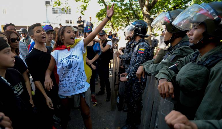 Las protestas se desarrollan frente a la Universidad Central de Venezuela en Caracas en donde los agentes lanzaron perdigones y gases lacrimógenos contra los manifestantes.