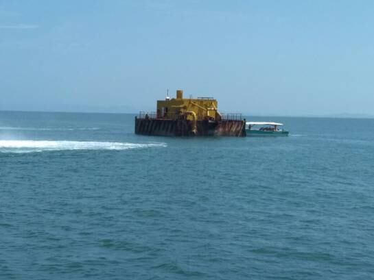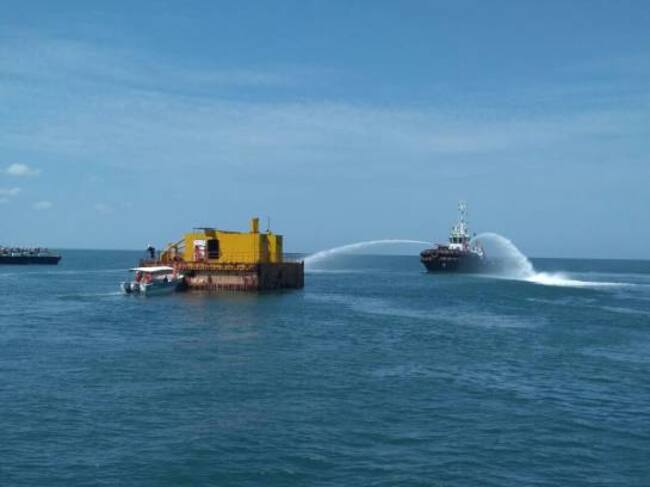 Utilizando chorros de agua a presión, impulsados desde una barcaza, fue fondeada a unas tres millas de la costa de Coveñas, una estructura de una vieja boya que era usada para el bombeo de crudo pero que estaba en desuso.